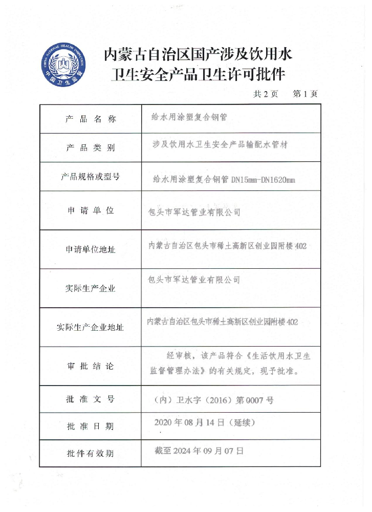 涉及饮用水证书